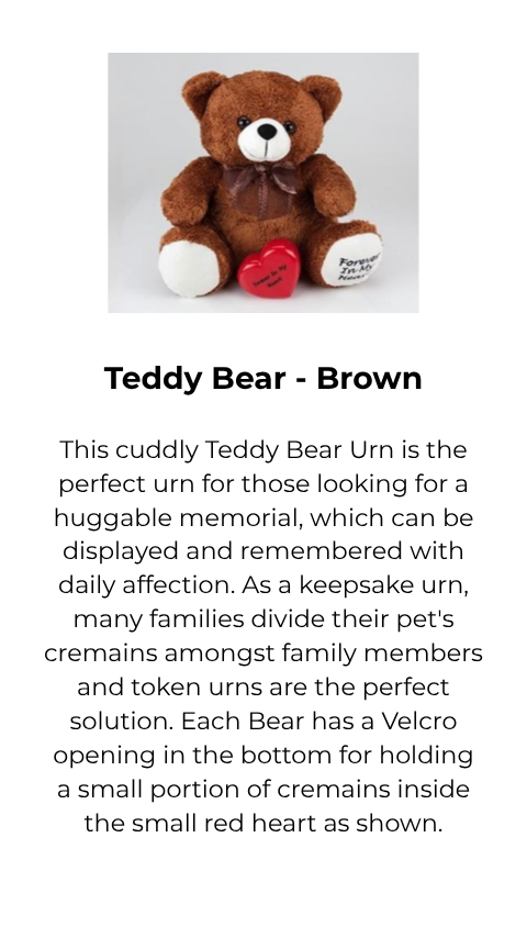This urn has a classic design and a latch, giving you a way to hold treasured keepsakes and remember your pet. These urns come with an engraved nameplate. You can also choose between an aluminum nameplate (silver) or brass nameplate (gold). Each nameplate includes one line of engraving (up to 25 characters)
